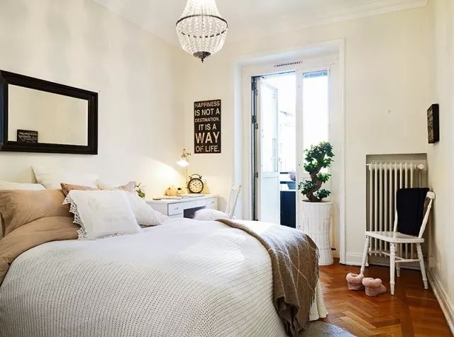 【12平方米】:夫妻二人的卧室不能比这更小了,在房间里除了放置床以外,还可以放一个双开门的衣柜。120×60厘米和两个床头柜。如果房间更大的话,就可以在摆放衣柜的地方选择一个带推拉门的大衣柜。
